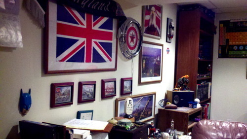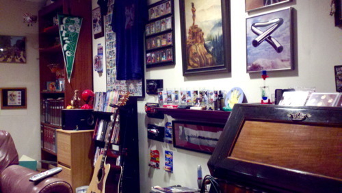 So this is my dad’s office. This is where I used to do my homework as a kid and watch episodes of Monty Python and Mystery Science Theater 3000. How was I not distracted by all of the awesome stuff on the walls?