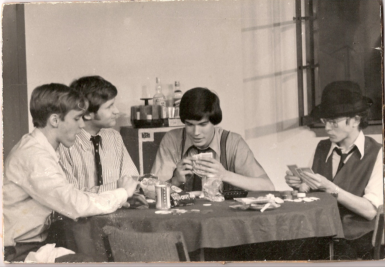 This is my dad in high school, rehearsing for the school play The Odd Couple.