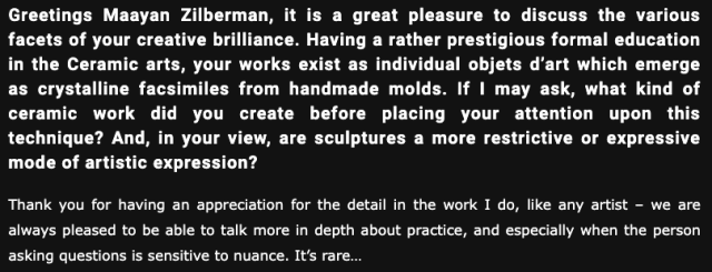 Excerpts from Maayan Zilberman’s interview with A T Wilkinson, whose questions here I love rereading.