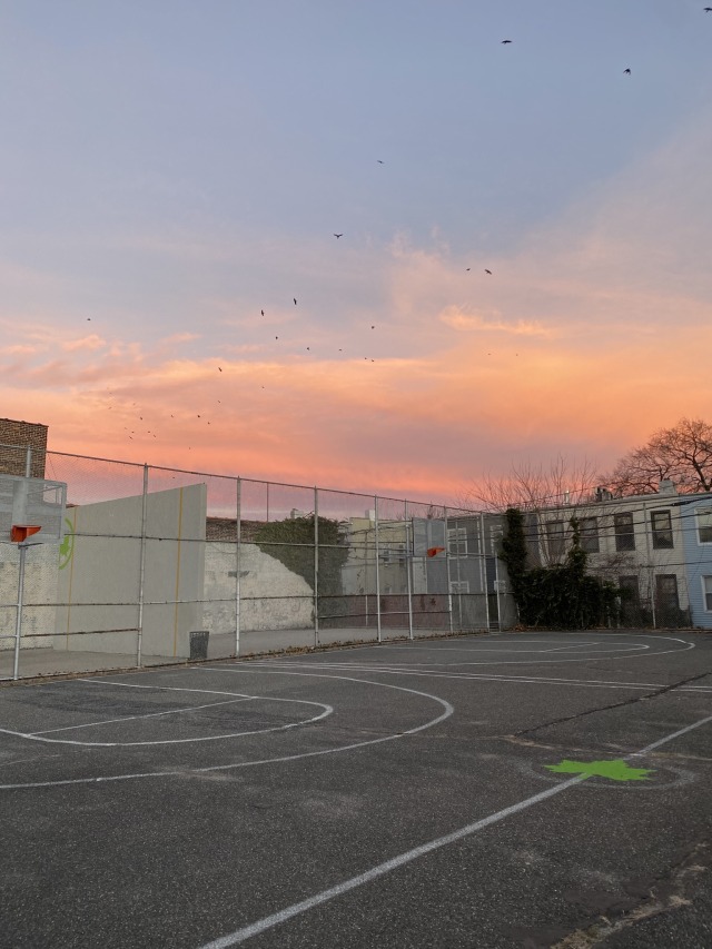 Murder (of crows) at the sunset court