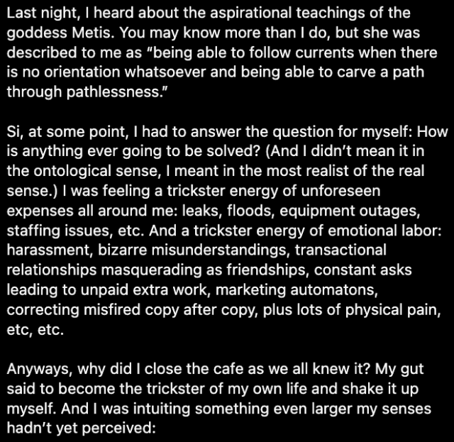 — Paige Lipari, on the occasion of Archestratus’s 8th birthday and cafe closure.