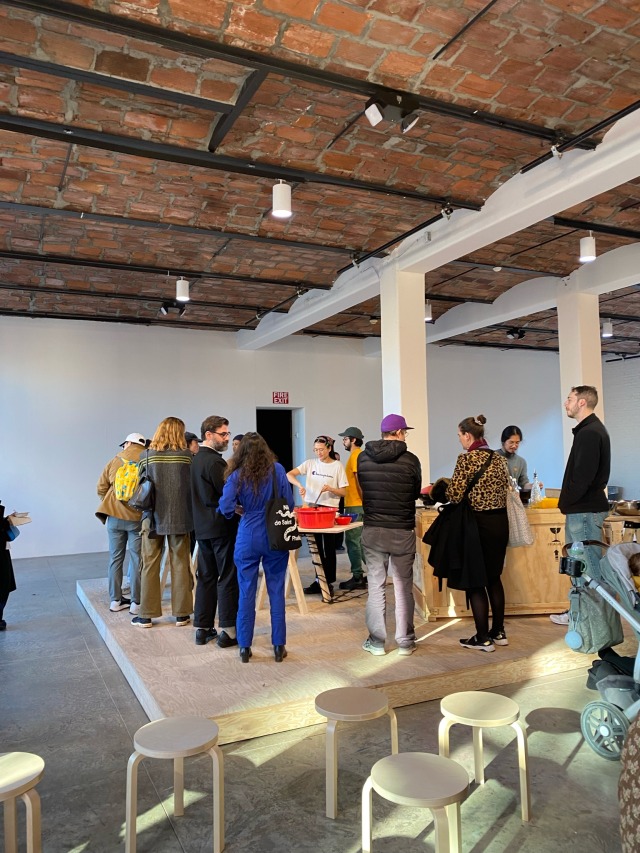 The main exhibition was Rirkrit Tiravanija’s “A Lot of People” and there was a “participatory piece” going on in which attendees were served pad thai that was made on the spot.