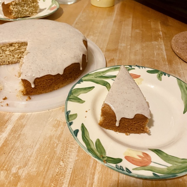 I made Yossy Arefi’s Simple Sesame Cake (which is a standard for me at this point) and I was going to top it with her freeze-dried strawberry icing —  but I learned, unfortunately, that freeze-dried fruit goes bad! I had an old bag in my pantry that I hadn’t touched since early 2022. Wow.