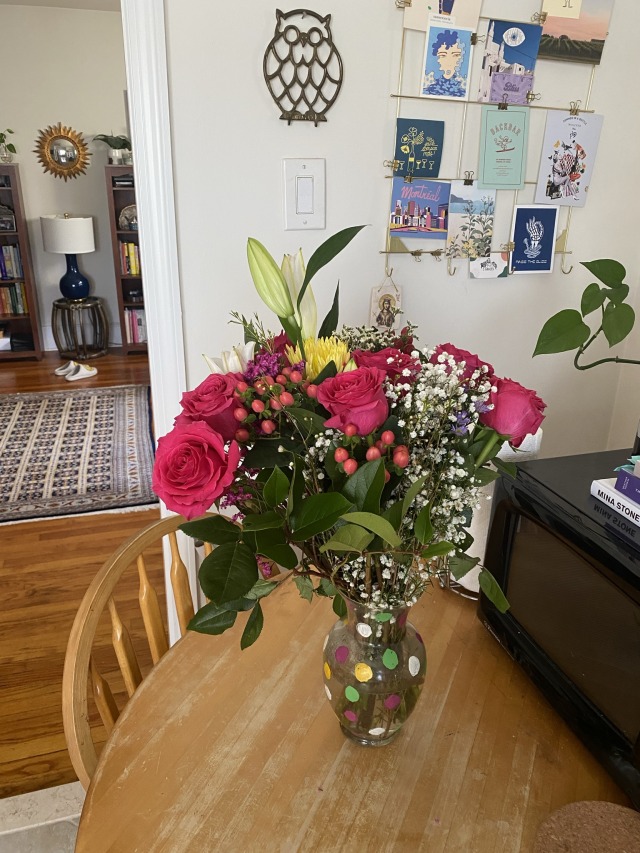 Fab night & morning spent with a favorite friend. She brought me an epic bouquet, and I baked her a cake.
